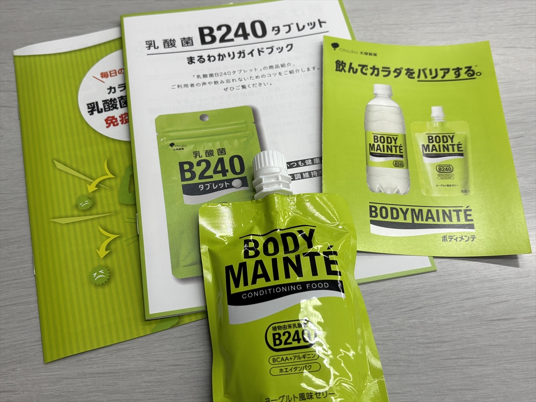 また夏バテや季節の変わり目で体調を崩しがちな季節ということもあり、大塚製薬様からコンディション維持に役立つ「BODY MAINTE」パウチを教えていただきましたので、会社から1人1袋を配布しました。