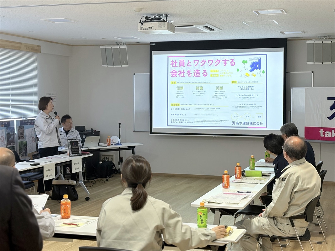 会場には行政機関や建設業協会の皆さまも出席されました。 「働きやすい現場をつくるには、企業だけでなく地域・行政の連携が欠かせない」と意見が交わされ、発注者側・受注者側の双方が今後も取り組むべき課題であると気持ちを新たにしました。