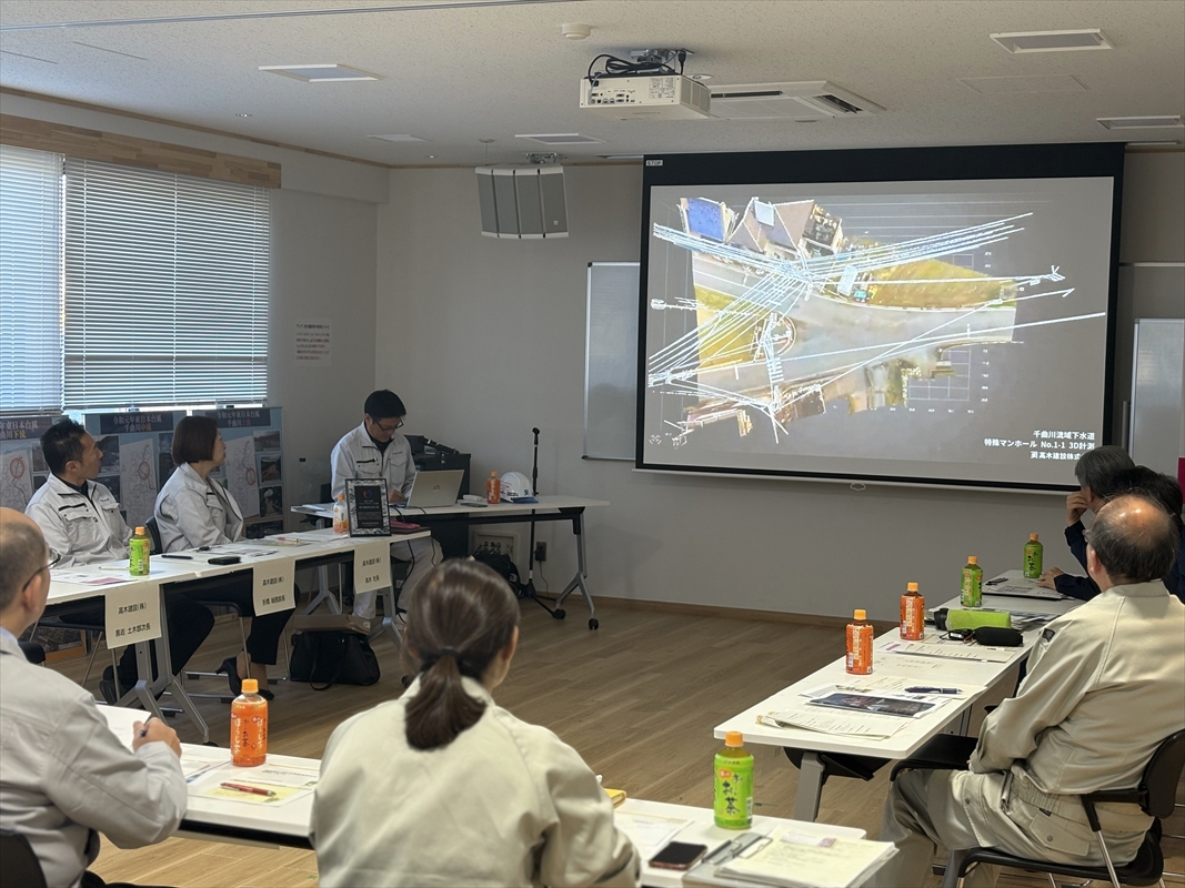 意見交換では、まず当社が進めてきたDXによる業務効率化の取り組みに加え、週休2日工事の推進や現場環境改善など、発注者・受注者双方が協力しながら環境づくりを進めている事例を紹介させていただきました。
