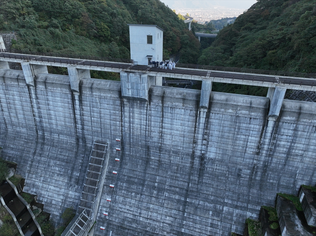 ドローンで記念撮影も行いましたが、ダムの先には市街地が見え、景観も見ごたえある場所でした。