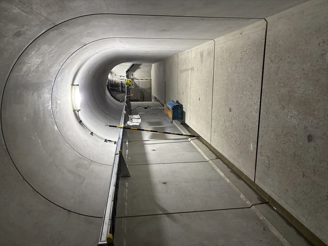 今回の見学ではエレベーターで河川より低い位置まで降り、普段は入れない場所まで特別に見させていただきました。