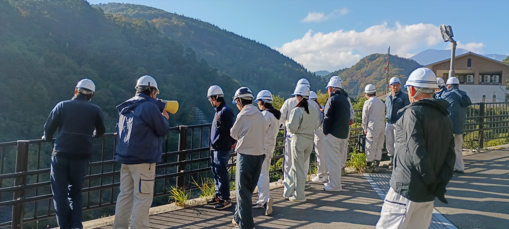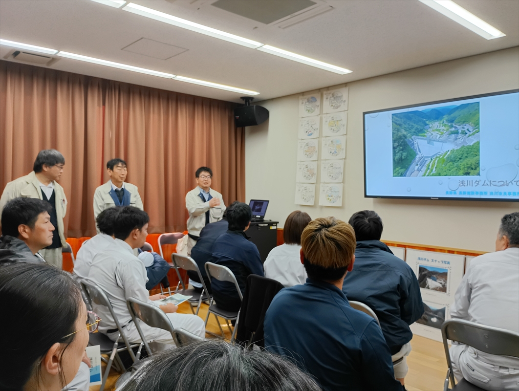 2025年10月29日、社内企画として「浅川ダム見学会」を開催しました。部門を問わず希望者を募り、17名の社員が参加しました。
