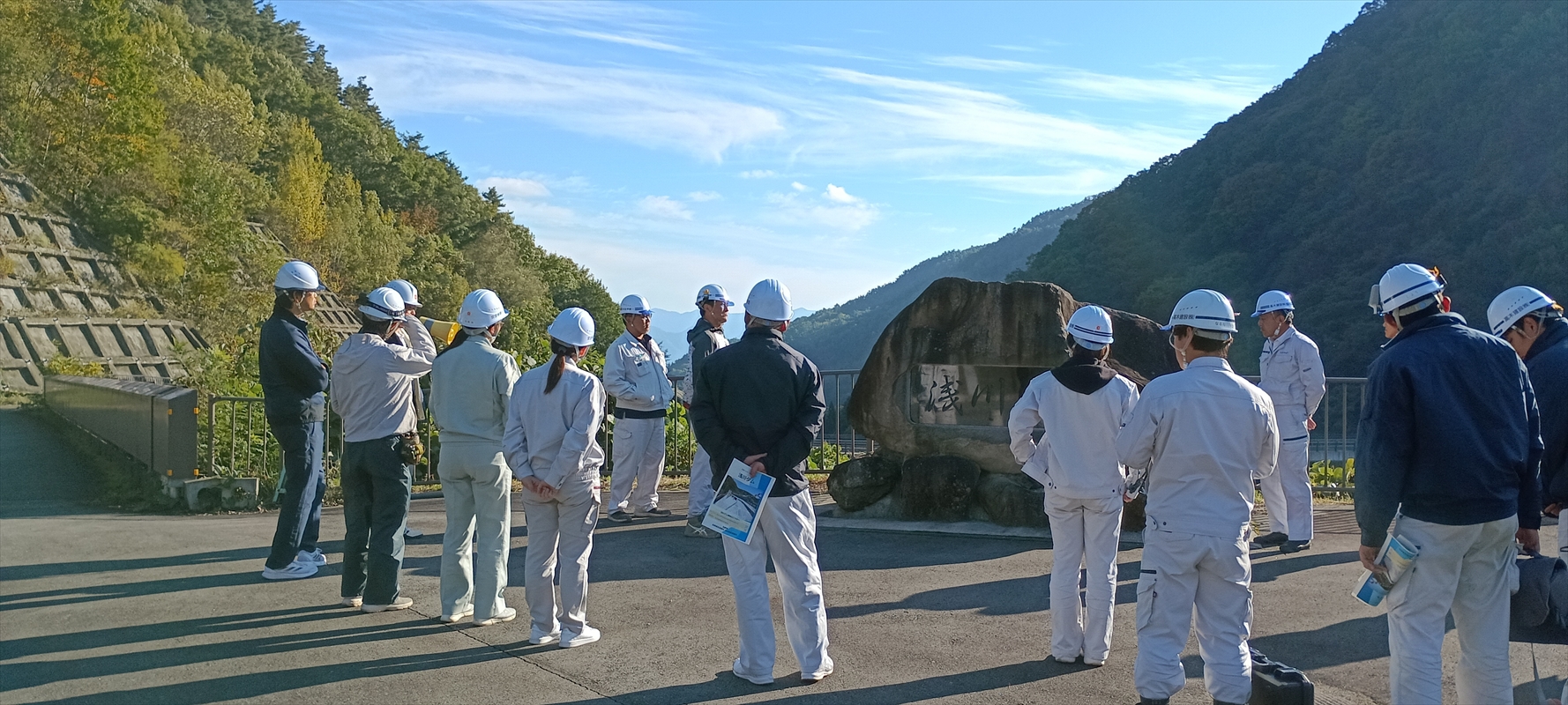 このダムは、かつて「脱ダム宣言」により計画が一度中止されたものの、見直しを経て再開・建設されたという背景があります。参加者の中には、当時の計画に前職で関わっていた社員もおり、そのご縁がきっかけで今回の見学が実現しました。