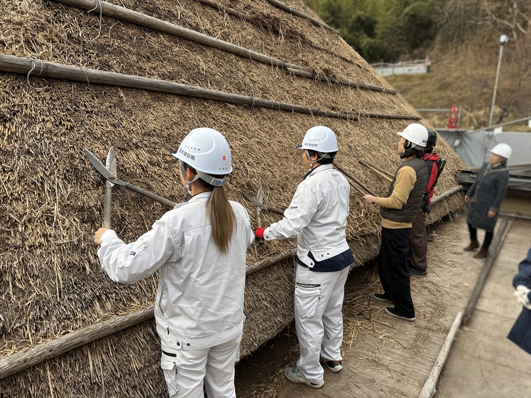2025年11月25日、長野市中条にある「やきもち家」様で、社員向けの現場見学会を行いました。 やきもち家様は、茅葺の屋根が目を引く素敵な古民家宿です。もともとは別の場所で民家として使われていた …