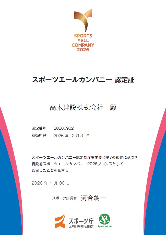 健康経営の一環として「スポーツエールカンパニー2026」の認定をいただきました。