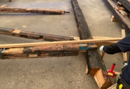 解体した構造材を修理し、